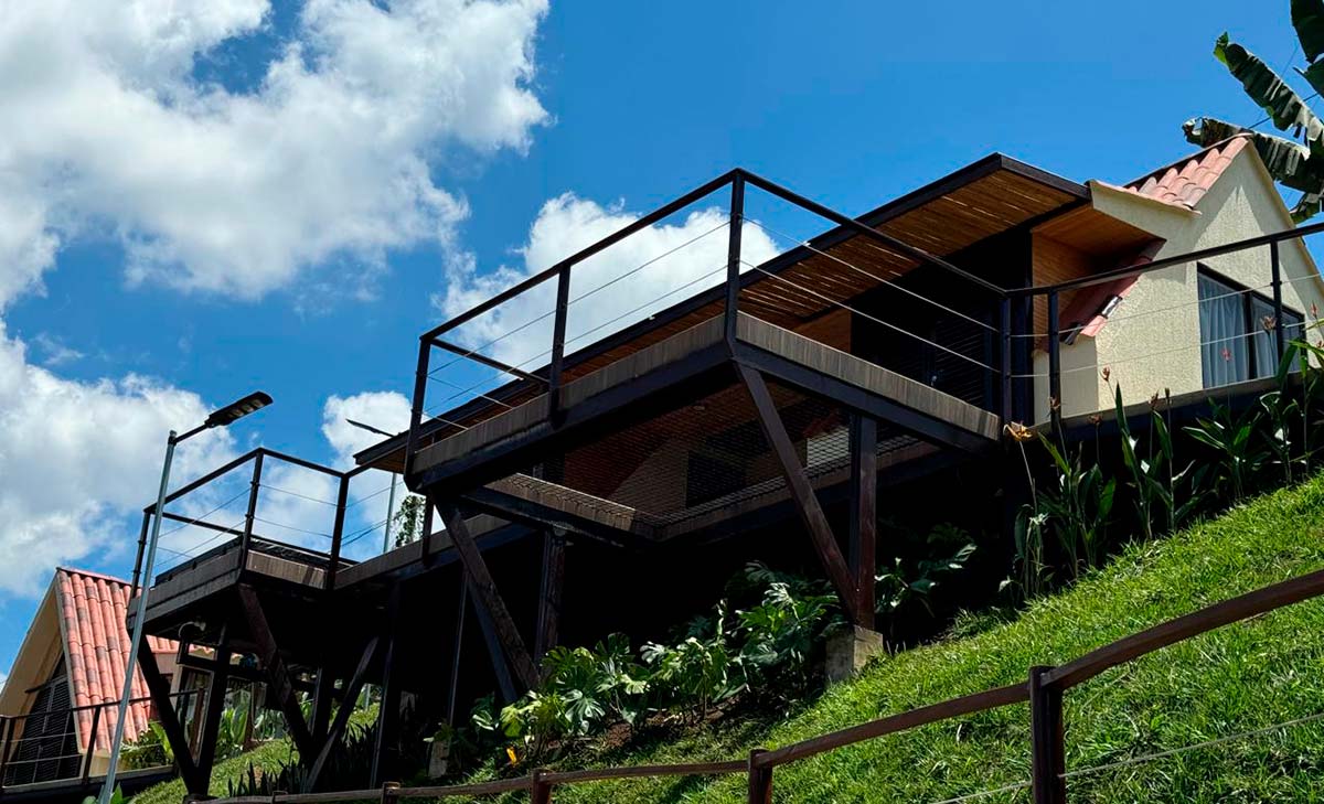 Nuestro alojamiento tiene un profundo respeto por la belleza natural del Paisaje Cultural Colombiano y las vistas panorámicas que rodean al hotel, en medio de exuberantes montañas, guaduales, aves y naturaleza.